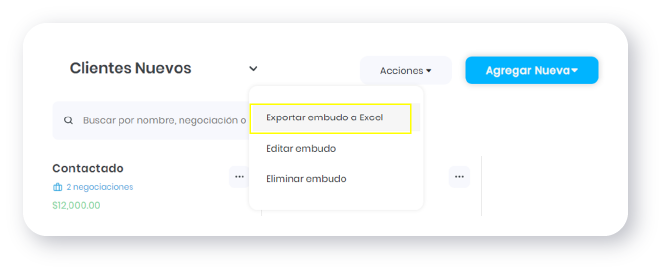 Exportar tus funnels te permitirá descargar un archivo Excel que contiene información detallada sobre los resultados y estados de tus negociaciones en forma de datos fáciles de analizar.