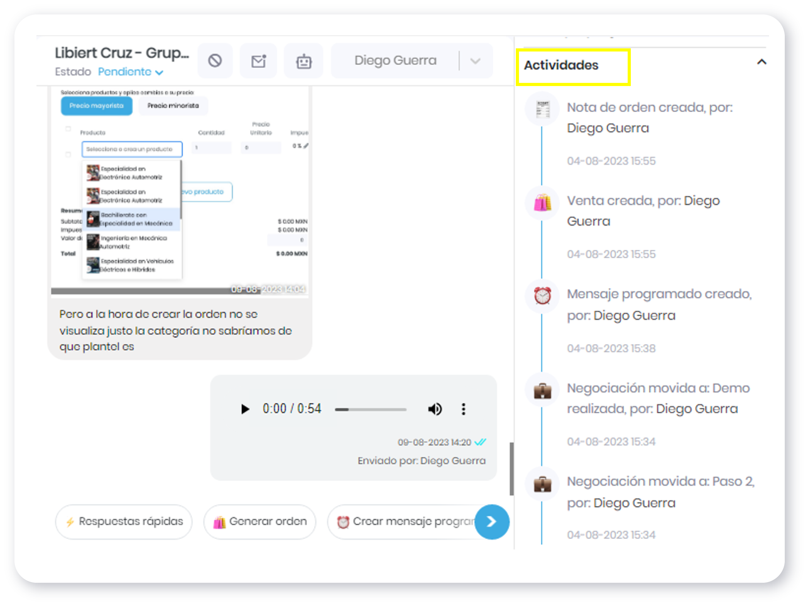 Mantén un registro de todas las negociaciones, notas creadas y programación de mensajes. Esto te proporcionará una visión clara y te permitirá personalizar aún más tu interacción, generando una experiencia de cliente excepcional.